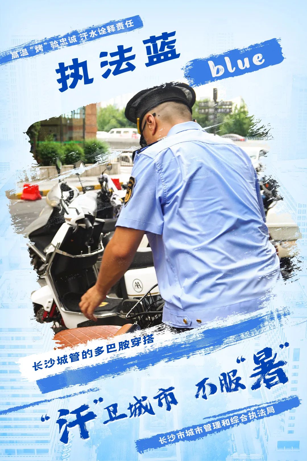 他们身穿蓝色制服,守护着城市的市容市貌。这一抹蓝既是一份为人民服务的沉甸甸的责任,也是文明执法、依法办事的长沙城管人本色,维护市容秩序,他们步履不停。