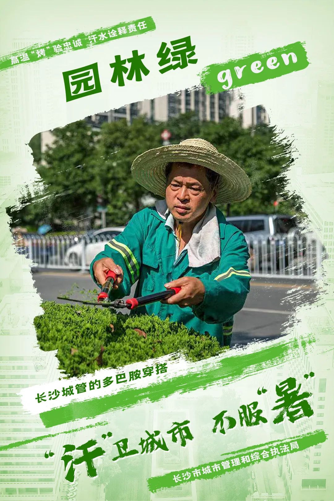 每一种颜色都有自己特别的含义和美丽,每一滴汗水都是奋斗的见证,每一份平凡的坚守都值得赞美。除了这些代表,在长沙还有许多高温坚守者,不负每一份“热”爱,就这样碰撞出了一个色彩斑斓的“多巴胺”城市。致敬!色彩斑斓的“长沙城管人”!