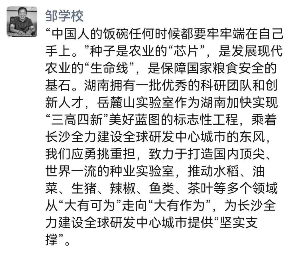 中国工程院院士、岳麓山实验室主任、湖南农业大学校长