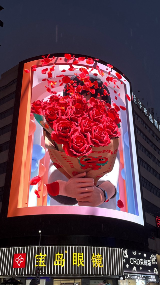 (五一商圈,裸眼3D电子屏七夕主题。图片均由 星辰全媒体记者 易博奇 摄)