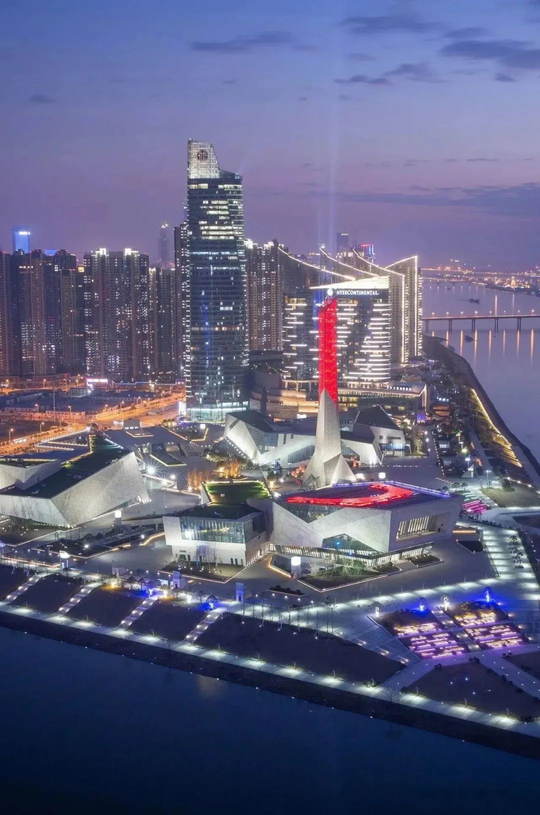 一朵巨大的“芙蓉花”,伸展在梅溪湖的北岸,几何与曲线碰撞出优美,从建筑中脱颖而出。几年来数十万张梅溪湖的影像每个角度都是大片。