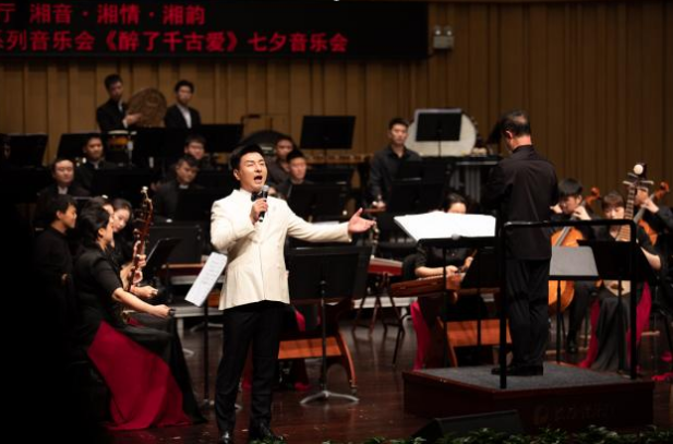 星辰在线8月23日讯 (通讯员 王莉莉) 8月22日晚,湖南民族乐团“醉了,千古爱——七夕节音乐会”在长沙音乐厅浪漫上演,抒情曼妙的民族音乐伴随着爱情的迷人芬芳,沁人心脾,让人如痴如醉……