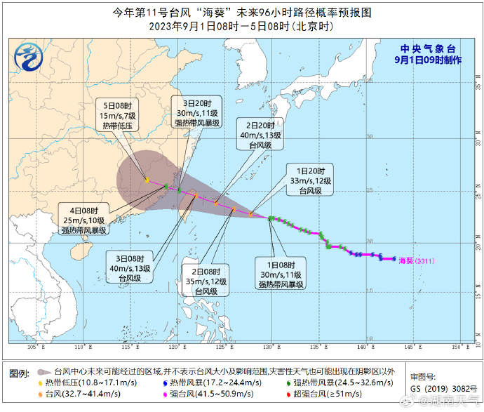 (第11号台风“海葵”未来96小时路径概率预报图(9月1日08时至5日08时))。