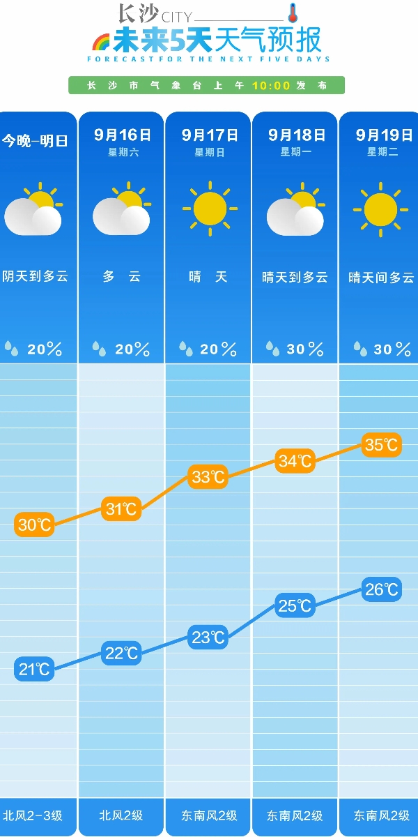 (长沙未来五天天气预报。由 长沙气象台提供)