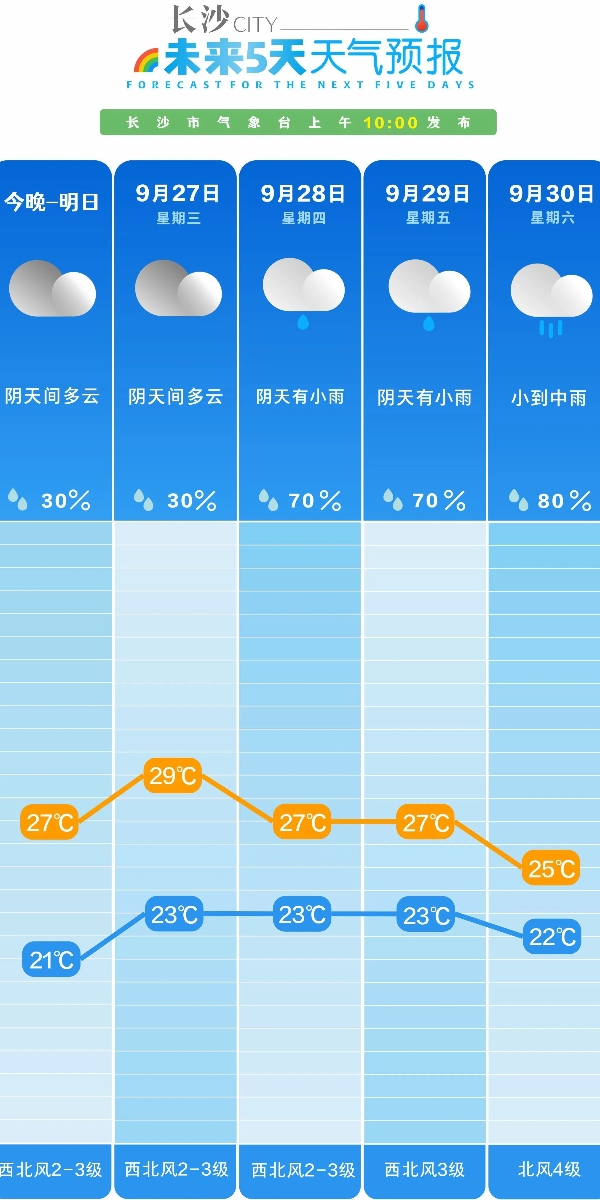 (长沙未来五天天气预报。由 长沙气象台提供)