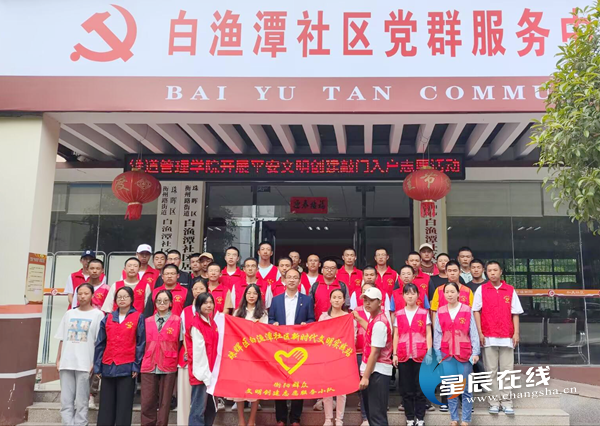 星辰在线9月27日讯(通讯员 叶子璇 赖涵彤)近日,湖南高速铁路职业技术学院铁道管理学院联合衡阳市珠晖区白渔潭社区开展平安文明创建“敲门入户”志愿活动,切实提高市民群众对创文工作的知晓率、参与率和满意度。
