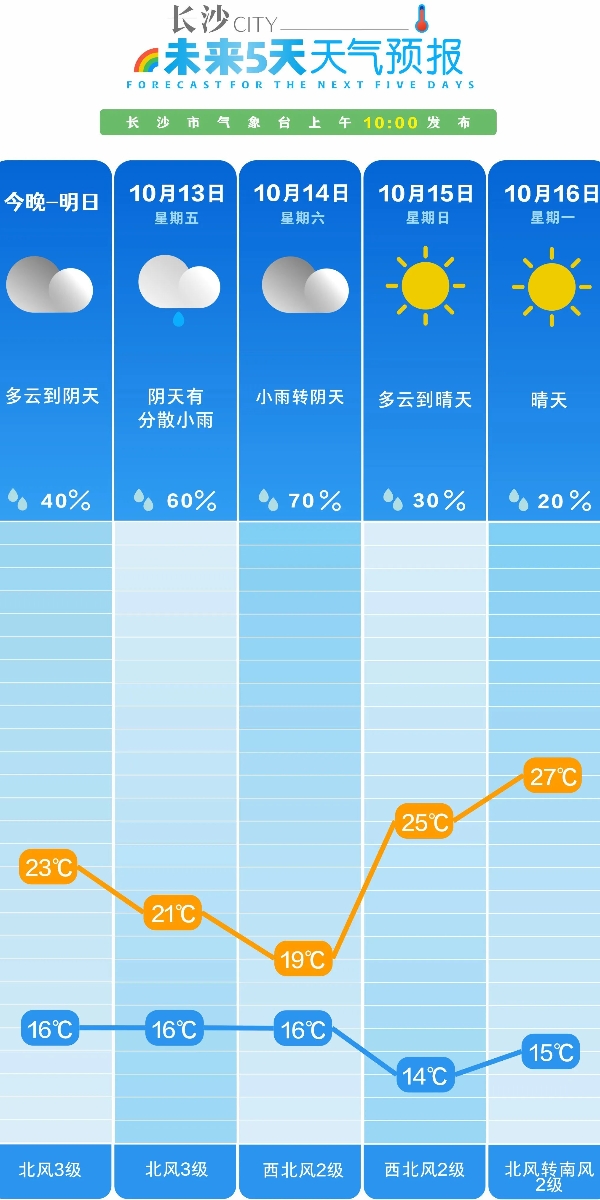 (长沙未来五天天气预报。图片由 长沙市气象台 提供)