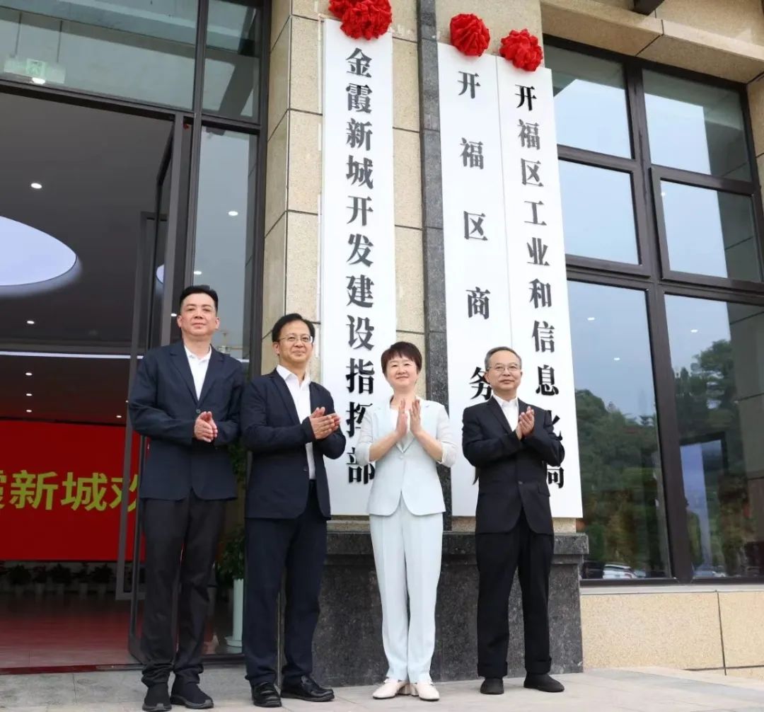 金霞新城开发建设指挥部正式揭牌成立,标志着金霞新城开发建设正式进入实质性启动阶段。开福区委书记罗玉环,区委副书记、区长高伟,区委副书记、统战部部长晏成方,区人大常委会主任欧干军,区政协主席蔡冰,金霞经开区党工委书记黎明出席。