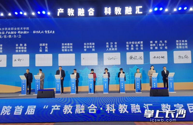 长沙民政职业技术学院在雨花区举行首届“产教融合·科教融汇——数字民政·智慧民生”成果推介会。长沙民政职院党委书记李斌,党委副书记、校长陈静彬,雨花区委副书记、区长黄军其出席推介会,区领导戴碧锋,相关部门负责人参加。