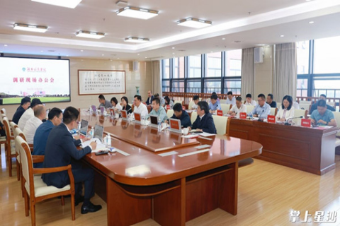 邵阳县委副书记、县长周玉祥一行来到天心区考察学习,深入了解天心区在思想观念、改革创新、产业发展等方面的经验和做法。区委副书记、区长周志军,区领导肖盛辉,园区领导谢巍,天心文广园党工委副书记、管委会主任徐伟参加。
