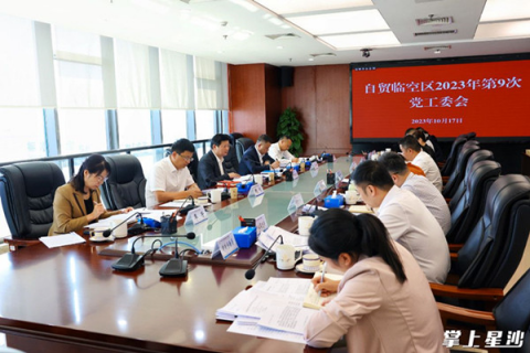 长沙经开区党工委书记、长沙县委书记、中国(湖南)自由贸易试验区长沙片区临空党工委书记付旭明主持召开长沙自贸临空区党工委会议,传达学习习近平总书记重要指示精神、重要讲话精神、重要文章精神并研究贯彻落实意见,听取落实市委巡察整改、清廉园区建设等情况汇报,研究意识形态(网络意识形态)相关工作以及其他有关事项。