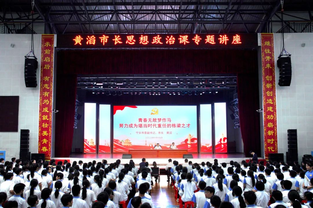 宁乡市委副书记、市长黄滔到宁乡十三中讲授思政课,鼓励大家以梦为马,不负韶华,努力成为堪当时代重任的栋梁之才,让青春在全面建设社会主义现代化国家的火热实践中绽放绚丽之花。宁乡十三中师生3000余人在现场听课,其他市直高中师生共1.7万余人通过视频直播收听收看。市领导喻林义、孔秋生参加。