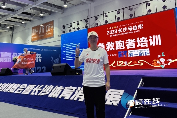 星辰在线10月31日讯(星辰全媒体记者 孙烨)10月29日清晨,贺龙体育场的东广场人头攒动,热情洋溢。阔别了三年之久的长沙马拉松比赛在此集结完毕,鸣枪开跑。本次长沙马拉松比赛可谓人气爆棚,刷新了历年来报名和参赛人数的历史记录,总参赛人数达到了两万六千人。长沙城市人气旺,长沙人民热情高,但是这样大规模的赛事,加之马拉松比赛的特殊性,医疗保障的重要性不言而喻,压力不小。中南大学湘雅三医院血液内科的蒋铁斌教授是一名马拉松爱好者,2018年她开始参加马拉松,这次家门口的长马,蒋铁斌教授的身份却跟以往的参赛不一样了:本次长马,她是一名身着白色运动装的急救跑者。