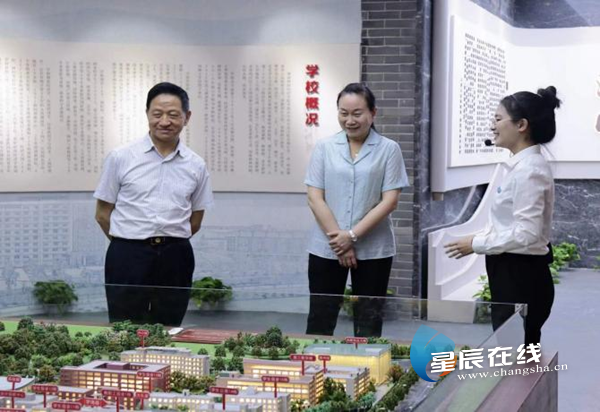 (彭崇谷参观学校发展规划。图片由通讯员 余峂潇 朱茵 提供)