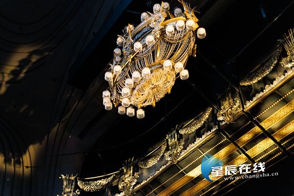 (由6000颗水晶组成、重达1吨的水晶吊灯于11月5号晚在梅溪湖国际文化艺术中心大剧院安装完成。图片均由通讯员 提供)