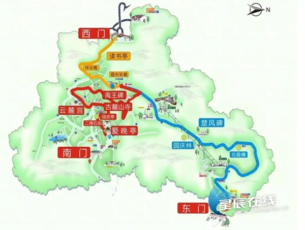在11月18日的开幕式上,景区还现场发布了岳麓山赏枫地图,邀请广大游客相约深秋,看万山红遍、层林尽染。其中,“赏枫西线”近段时间成为了新晋“网红”,成为喜爱“捡秋”、独爱野趣的登山爱好者的绝佳之选。另辟蹊径、独树一帜,从西大门上山,途径读书亭、祥云阁,便可到达山顶的观光长廊,一路上不仅能与漫山的红枫撞个满怀,尽情呼吸只有泥土与草木香的空气,说不定还有野果子、小动物等等不期而遇的小惊喜。