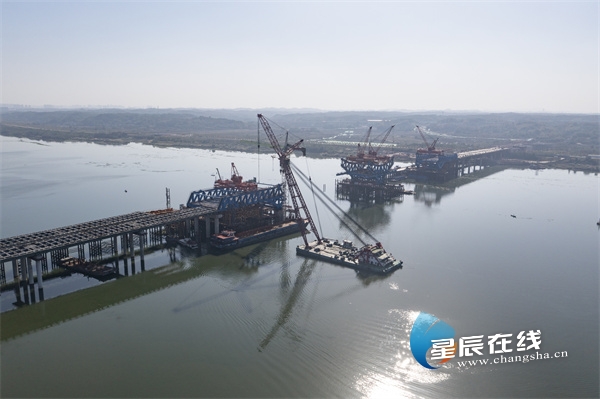(暮坪湘江特大桥建设加速推进中。以上图片均由受访单位提供)