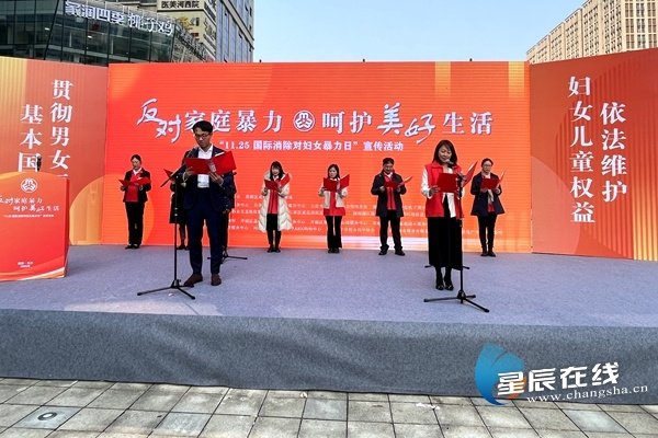 星辰在线11月25日讯(星辰全媒体记者 田也)11月25日是“国际消除对妇女暴力日”,为了进一步提高全社会反家庭暴力意识,当天下午,长沙市“反对家庭暴力·呵护美好生活”国际反家暴日主题活动在岳麓区王府井广场举行。