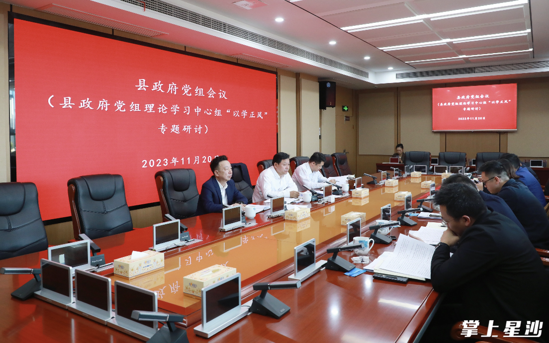 长沙县委副书记、县政府党组书记、县长陈永高主持召开县政府党组理论学习中心组 “以学正风”专题研讨会议。他强调,要深入学习贯彻习近平总书记关于党的作风建设的重要论述精神,自觉运用习近平新时代中国特色社会主义思想改造主观世界、提高党性修养、锤炼过硬作风,带头大兴务实之风、弘扬清廉之风、养成俭朴之风,为实现“三高四新”美好蓝图提供根本保障。长沙县领导彭韬、彭正球、邱友梅、冯页新、吴昊、吴正华、涂亚鹏、张吉刚参加。