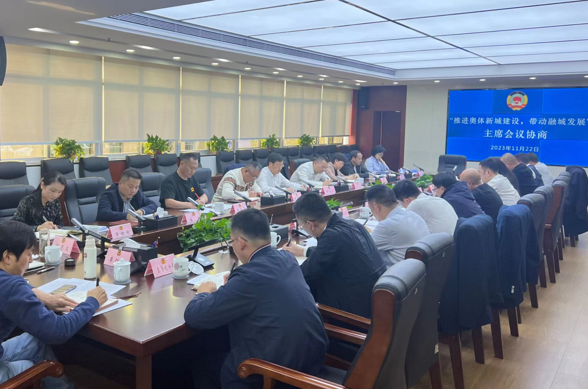 天心区政协就“推进奥体新城建设,带动融城发展”组织开展主席会议协商,天心区委副书记、区长周志军,天心区委副书记、统战部长厉波,天心区政协党组书记、主席张界贻,天心区领导黄会、赵英华、蔡逸、秦超、王珊参加。