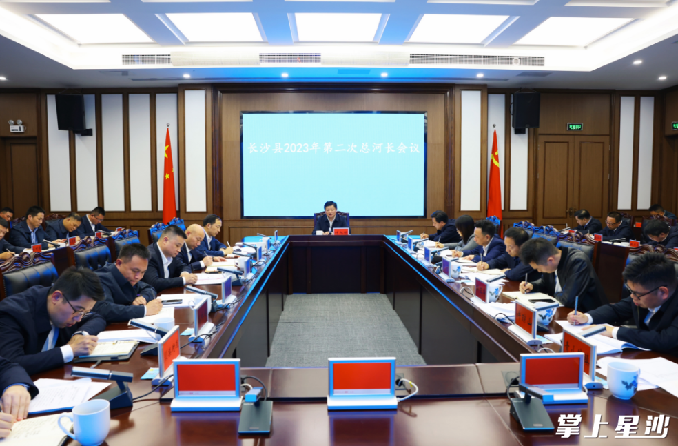 长沙县召开2023年第二次总河长会议。长沙经开区党工委书记、长沙县委书记付旭明出席并强调,要深入学习贯彻习近平生态文明思想,全面落实党中央、国务院关于河湖长制工作的决策部署和省、市总河长会议精神,坚决扛牢治水兴水的政治责任,全力推动劣水污水问题清零,坚决打赢“除臭剿劣”攻坚战,不断擦亮水好水美星沙名片。长沙县委副书记、县长陈永高主持会议。区县领导杨溢、陶建军、彭正球、朱智勇、卢铓、刘广、冯页新、吴正华、涂亚鹏,县人民检察院检察长参加。
