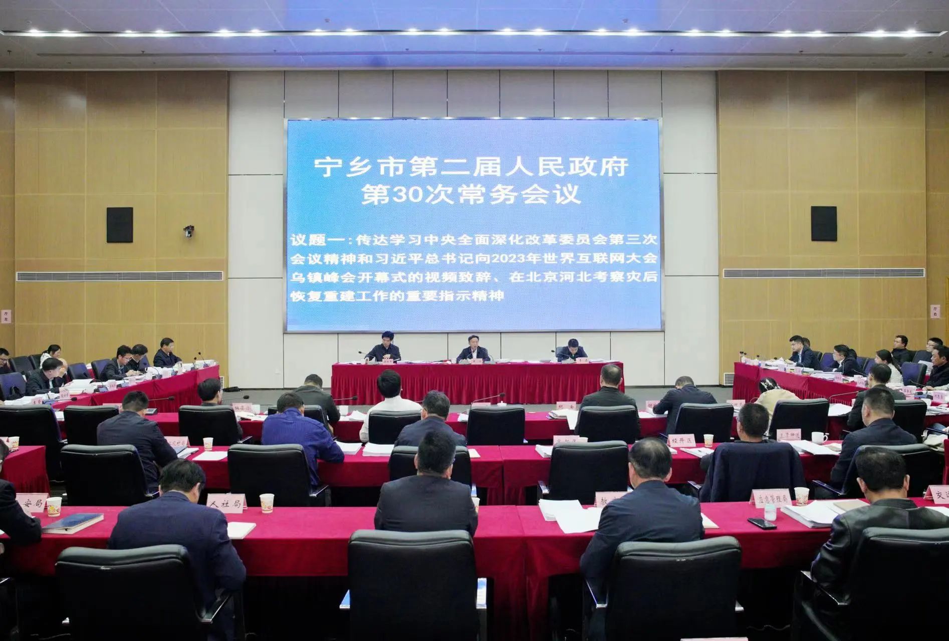 宁乡市委副书记、市长黄滔主持召开市第二届人民政府第30次常务会议,传达学习中央全面深化改革委员会第三次会议精神和习近平总书记向 2023 年世界互联网大会乌镇峰会开幕式的视频致辞、在北京河北考察灾后恢复重建工作的重要指示精神,研究我市贯彻落实意见;传达学习上级文件精神,研究县域经济高质量发展、耕地保护和粮食安全、省重点流域水生态环境保护、自建房安全管理、未成年人保护、气象高质量发展以及打击治理电信网络诈骗犯罪、禁毒等工作,并审议《宁乡市落实〈中共湖南省委关于锚定“三高四新”美好蓝图加快推进高质量发展的若干意见〉行动方案(2023年—2027年)》等相关文件。