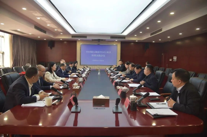 开福区委副书记、区长高伟与中国银行湖南省分行党委书记、行长李芒一行座谈,双方就进一步深化政银合作深入交流。区领导蒋君、江璜、胡海飞参加。