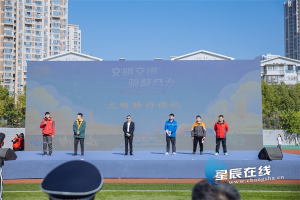 星辰在线11月28日讯(星辰全媒体记者 周子豪)一路礼让一路安,礼让安全合家欢。11月28日上午,文明交通“骑”聚合力——长沙市文明交通主题宣传教育活动在中南大学铁道学院举行。