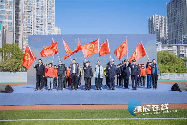 活动现场还为来自市交通运输局、市城管执法局、市交警支队、市邮政管理局、高校等志愿服务队代表进行授旗。同时,政府、企事业单位、非公企业、志愿者等多方力量在活动现场建成长沙市文明交通安全共建联盟,带头礼让斑马线,践行城区不鸣笛和文明骑行,共同参与文明交通劝导志愿服务。