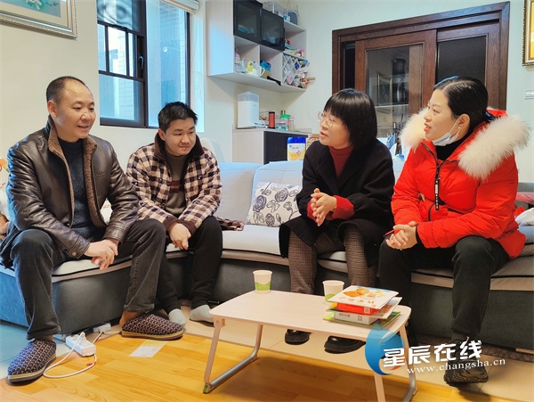 (桃花井社区书记李浪和社区工作人员上门走访。)