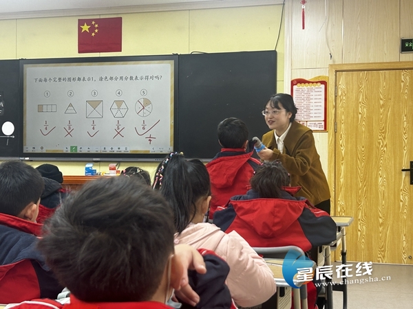 (课题实践组成员唐菀琳老师进行了“兴探创全”课例展示——《分数的初步认识》。通讯员 供图)
