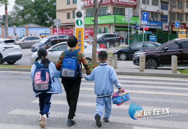 开学第一天,黄兴中学和黄兴小学两所学校数千名师生集中进出,往年这里都会发生一定程度的交通拥堵,如今两个路口通行效率大大提高,得益于黄兴镇联合交警部门给这里安装了一个新的人形一体化红绿灯。