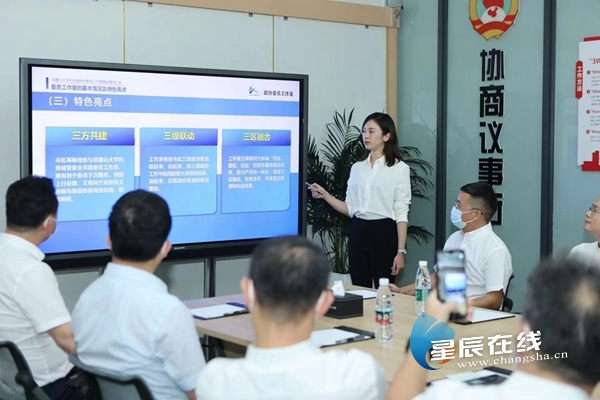 “委员工作室主要根据委员工作室的五大功能定位,开展协商议事、提案以及各类交流活动等,其中品牌和亮点是我们‘岳麓山下好商量’协商议事品牌,在这个品牌下面我们有两个子品牌,一个叫‘岳麓科创说’,一个叫‘岳麓科创行’。”曾欣向记者表示,依托湖南湘江新区的优势产业链,2023年委员工作室举办了移动互联网、生物医药、青年人才成长等专场活动,现场邀请产业链上企业“说成长”,省市区政协委员“说建议”,专家“说创新”和相关部门“说办法”,将政协协商向基层协商延伸,帮助园区企业提供一些解决问题思路,为企业高质量发展把脉问诊,出谋划策。