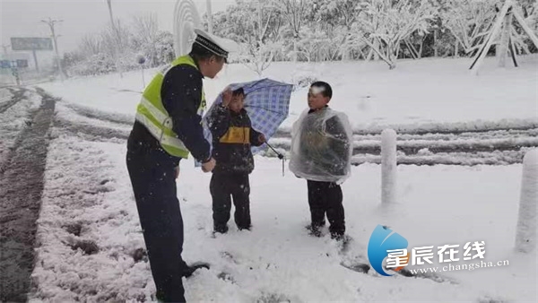 (长沙交警帮助雪中迷路儿童。长沙交警供图)