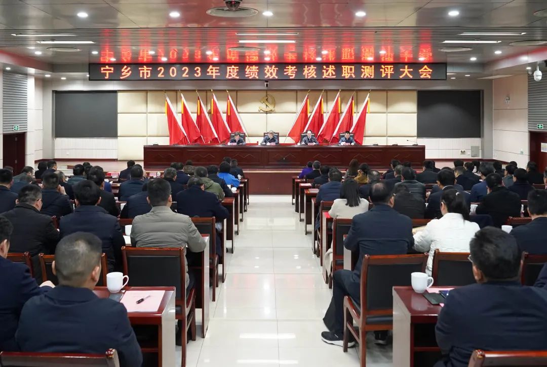 宁乡市2023年度绩效考核述职测评大会召开。宁乡市委书记张作林代表宁乡市委、市人大常委会、市政府、市政协班子述职。宁乡市委副书记、市长黄滔主持会议。