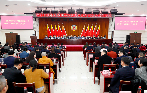 中国人民政治协商会议长沙市天心区第六届委员会第三次会议圆满完成各项议程后,在区机关三楼会议室胜利闭幕。全体区政协委员,天心区委书记吴新伟,天心区委副书记、区长周志军,区委副书记、统战部长、党校校长厉波,区人大常委会党组书记、主任黄文先,区政协党组书记、主席张界贻,以及全区副县级以上领导干部,区公检法主要负责人、区人民法院原院长,双重领导及垂直管理单位主要负责人,区委常委部门常务副职,区直机关各部门党政主要负责人,各街道党政主要负责人和老委员咨询团成员出席闭幕式。