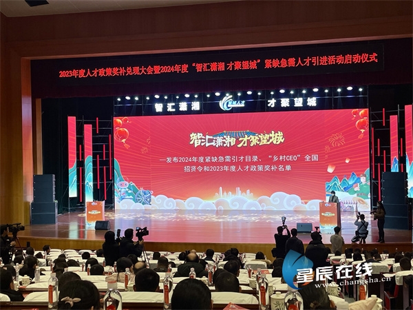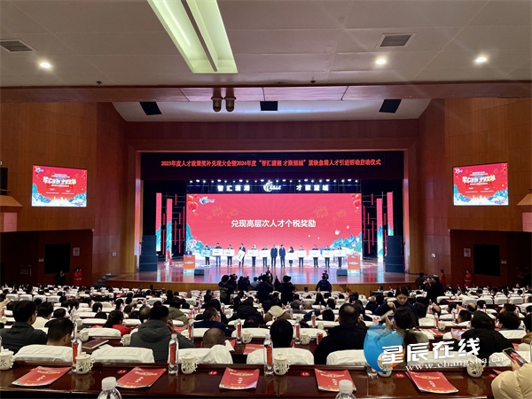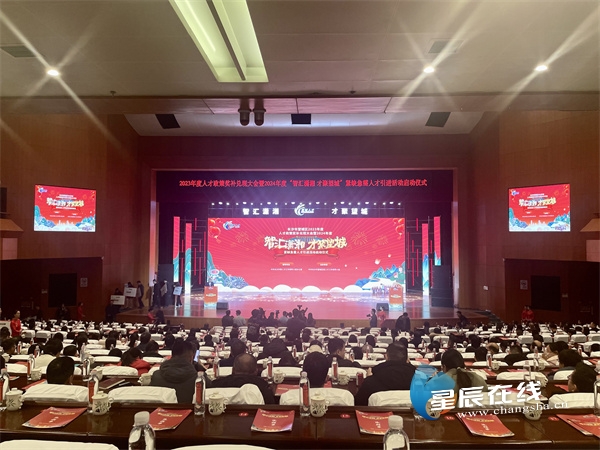 (望城区2023年度人才政策奖补兑现大会暨2024年度“智汇潇湘才聚望城”紧缺急需人才引进活动启动仪式现场。)