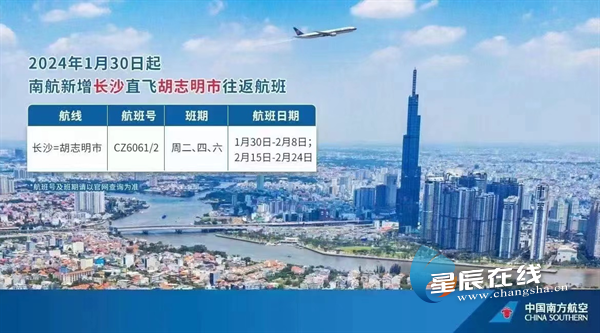 (1月30日,长沙↔胡志明市的航线开始运营。)