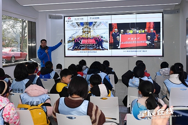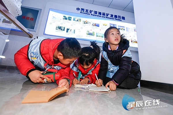 “大家知不知道海洋里面有什么?”在海洋采矿科技中心,老师给孩子们介绍海洋富饶的矿产资源,带领大家参观海底矿石。孩子们充满好奇地围着采矿机器人,抛出一连串的疑问。“矿石是不是海洋吐出来的?”“矿石是怎么从海底捞出来呢?”老师引导大家边参观边思考,生动形象地讲解采矿的过程和原理,解答大家的问题。
