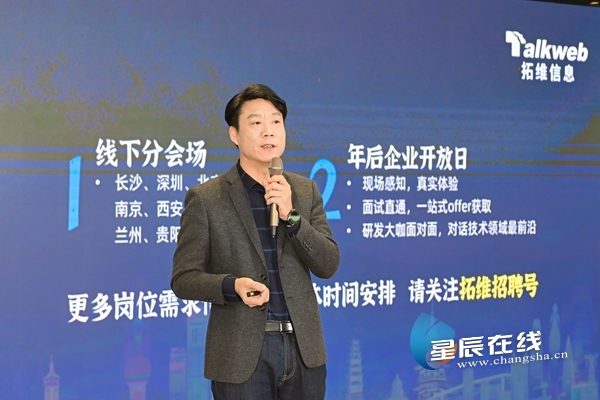 此次千人招聘计划启动仪式上,拓维信息基石研究院院长、创新业务事业部总经理吴俊昭作为深圳、长沙两地高层次人才回湘发展的代表,也现身直播间分享入职拓维信息三年以来的感受和体验。“受重视、有平台、有前景,这是我的切身感受。”吴俊昭说,“拓维会为核心人才‘量身定制’科研资源、团队成员、发展方案,给予充分施展才能的舞台,可以心无旁骛搞研发。而长沙的政策也给了人才回湘无微不至的关怀,定期开展的高层次人才交流活动也给大家搭建了思想碰撞、资源共享、技术交流的桥梁”。