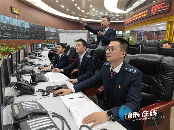 控制中心作为线路运营指挥中枢,是运营的大脑,行车组织必须精细到毫厘,全员立刻进入临战状态。当值的线网管控中心3号线调度一班,延长运营服务和雨雪冰冻天气的双重压力一下子压在这些年轻人的身上。线路值班主任王东宇迅速组织大家在班前做好桌面推演,确保不放过任何一个行车关键点。现场,OCC大厅调度电话、无线调度台的声音不绝于耳,王东宇临危不乱,一边紧盯实时监控的户外线路情况,一边有条不紊发布调度指令,连续奋战近10个小时。
