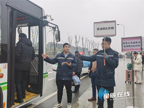 2月6日8时起,湘潭北站-红桥站公交接驳启动,长沙轨道和长沙公交运营有限公司紧急联动,共安排6辆公交车,20分钟间隔进行乘客转运,公交接驳期间共计开行免费接驳车164趟次,共接驳乘客4751人,没有一名乘客滞留站台,乘客安全到达目的地,西环线许多干部职工却喊哑嗓子、熬红双眼、跑麻双腿。“只要乘客能够安全离开、平安到家,苦点累点我们不算什么!”
