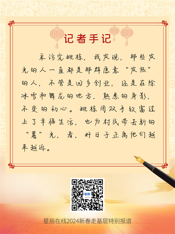 “舞龙会我们准备了好几年,之前因为各种原因而停止,今年又是龙年,龙在中国象征着祥瑞,这次我们一定要玩!”姚栋告诉星辰全媒体记者,前几日的冰雪让他忧心忡忡,为了让大伙过个好年,村里由村干部和党员带头,村民群众自发和区里派的乔口建设应急队员合力除冰雪,有几名六七十岁的老党员和年轻党员晚上奋战到十一二点。