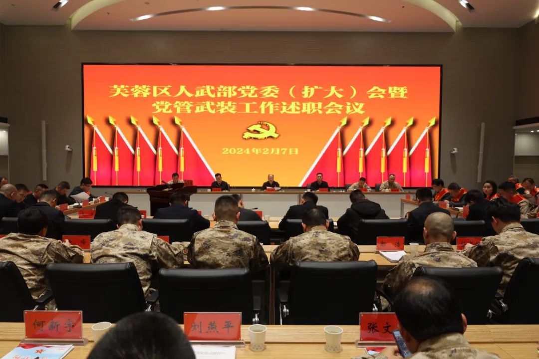 芙蓉区人武部党委(扩大)会暨党管武装工作述职会议召开。会议传达了上级党委全会精神,总结全区2023年工作,听取街道党(工)委书记党管武装工作述职报告,表彰先进集体和个人,安排部署今年重点任务。芙蓉区委书记、区人武部党委第一书记周春晖出席会议并讲话。区委常委、常务副区长刘洪波,区委常委、区委办主任陈亚静,区人武部部长王超,区人武部副部长欧阳毅出席,各街道党(工)委、区国防动员委员会成员单位、驻芙国企武装部、各高校武装部相关负责同志参加。会议由区委常委、区人武部党委书记王黔军主持。