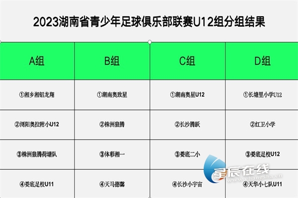 本次比赛在湖南省足球训练基地举行,共分为U10、U12两个组别,其中U10共12支球队参赛,U12共16支球队参赛。此前,赛前联席会上各参赛球队已抽签落位,从2月21日开始,各参赛球队将通过小组赛、淘汰赛两个阶段决出最终排名。