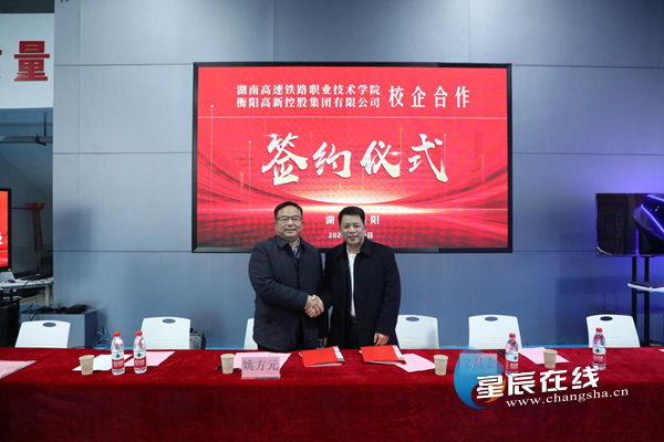 (湖南高速铁路职业技术学院与衡阳高新控股集团有限公司签约现场。)