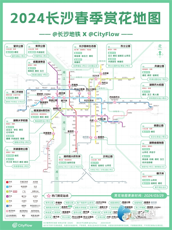 星辰在线3月29日讯(星辰全媒体记者 岳珊 彭穗) 春来无事,只为花忙。当姹紫嫣红布满三月,充实了春日里的闲暇,留下了抬眉望眼间的惊喜,也装点了通勤路上的美好,一幅向花而行的赏花攻略必不可少。长沙地铁搜集了一些好看的打卡地,邀您一同记录长沙春天,来一场与繁花不期而至的邂逅,坐上地铁,一起去看看吧。