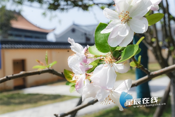 东风催露千娇面,玉骨冰肌映日辉。走出开福寺站1号口,海棠点点映入眼帘。这是一场视觉盛宴的前奏,一街之隔的开福寺,古刹疏钟,绿荫覆瓦,杜鹃、山茶、海棠次第开放。