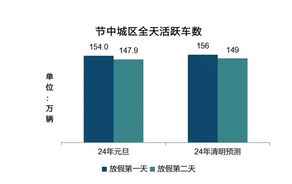 预计节中全天活跃车数低于节前周末,其中放假第一天受进出城影响流量相对较大,放假第二天活跃车数处于假期最低点。