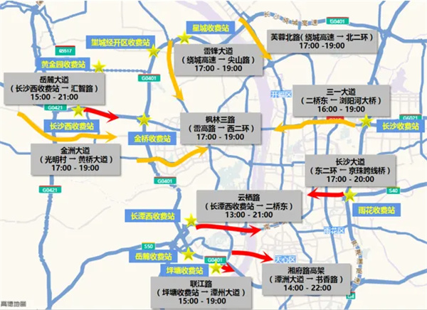 (进出城通道以及连接的主干道交通。图片均由长沙交警提供)